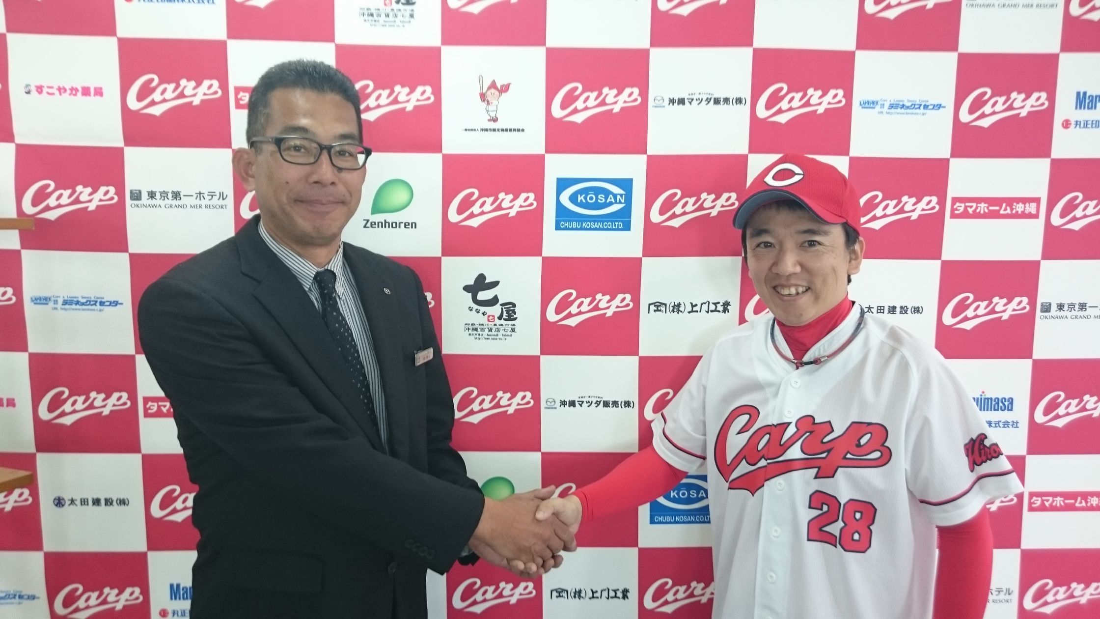 緒方監督・黒田投手・新井選手・堂林選手などもこのボードの前に立ってインタビュー受けたんですよ~♪